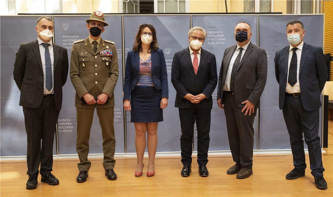 Oggi (13 maggio) si è riunito a Bolzano il tavolo strategico che si occupa dell’accordo Stato-Provincia, con il compito di fare il punto della situazione e avviare i lavori per la predisposizione del quarto accordo-quadro. Del gruppo di lavoro fanno parte il Ministero della Difesa, rappresentato dal Generale Giancarlo Gambardella, dal Colonnello Pasqualino Ianotti e dal Tenente colonnello Salvatore Magazzù, dal Comando degli Alpini, rappresentato dal Generale Michele Risi, dal Colonnello Ovidio Esposito e dal Tenente colonnello Marco Cargnoni, dall’Agenzia del Demanio, con Sebastiano Caizza, Stefano Bruno ed Eugenia Pantozzi, e dall’amministrazione provinciale, rappresentata dal segretario generale Eros Magnago, dalla vice-segretaria generale Marion Markart e dai funzionari Davide Gemmellaro, Daniel Bedin, Marina Albertoni, Maximilian Dusini e Hans-Peter Santer.