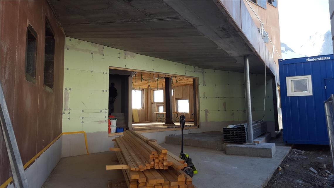 L’assessore provinciale all’edilizia e patrimonio, Massimo Bessone, si è potuto fare di persona un quadro dell’avanzamento dei lavori nell’ambito di un recente sopralluogo compiuto con i tecnici del suo team. Erano presenti il responsabile unico del procedimento, Stefan Canale, direttore reggente dell’Ufficio edilizia Ovest, il direttore reggente della Ripartizione patrimonio, Daniel Bedin, per lo studio area architetti associati, Andrea Fregoni, il gestore del rifugio, Andreas Schwarz, e Roland Graf, titolare dell'impresa Graf & Söhne.