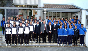 Nel dare il benvenuto alle azzurre e alle tedesche Durnwalder ha tracciato un quadro della realtà locale e ha ricordato la posizione storica dell'Alto Adige quale ponte di incontro tra il mondo di lingua italiana e quello tedesco, "che si uniscono oggi in una nuova Europa", ha detto il Presidente. Durnwalder si è complimentato con le due squadre per i rispettivi successi, "perchè le vostre nazionali rappresentano un bel biglietto da visita per i rispettivi Paesi." Alla serata erano presenti tra gli altri, oltre ai dirigenti delle due Federazioni, l'assessore provinciale Werner Frick e il vicesindaco di Bolzano Elmar Pichler Rolle.