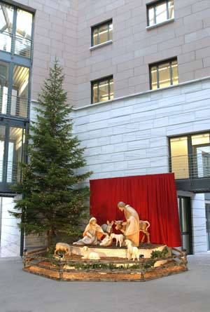 Il presepe che gli scultori di Santa Cristina in val Gardena allestiscono ogni anno in una località diversa fa tappa nel 2004 a Bolzano, nel passaggio interno del Palazzo provinciale 2 davanti alla stazione ferroviaria, dove è stato allestito in questi giorni.