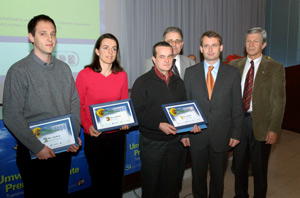 I vincitori del Premio Ambiente Trentino/Alto Adige 2004 sono stati premiati oggi a Bolzano dall'assessore provinciale all'ambiente altoatesino Michl Laimer e dal direttore dell'Agenzia provinciale per l'ambiente, Walter Huber.