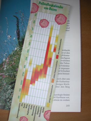 Il Laboratorio biologico provinciale ha realizzato un segnalibro che riporta il calendario pollinico nelle diverse località altoatesine e gli indirizzi cui fare riferimento per avere informazioni sulla presenza di pollini nell’aria. Un modo originale per venire incontro alle esigenze di informazione di chi soffre di allergia ai pollini.