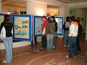 Interesse an Europa: Schüler nehmen die EU-Schautafeln unter die LupeDie Wanderausstellung, die in Österreich von Erich Wörister konzipiert worden ist, gastierte heuer bereits zum zweiten Mal an der Landesberufsschule für das Gastgewerbe "Savoy" in Meran. Auf Initiative von Christine Laimer und Jakob Schmelzer war die mittlerweile erweiterte Ausstellung unter dem Titel "Das EUropa der 25 - Quo vadis EUropa" für drei Wochen an die Schule geholt worden, um den Schülern die Geschichte der EU, wichtige Daten zu den jetzigen Mitgliedsstaaten sowie Informationen zu den Beitrittskandidaten zu vermitteln. In Teamarbeit wurden Arbeits- und Informationsblätter ausgearbeitet, die dem Verleiher der Ausstellung zur Dokumentation zur Verfügung gestellt worden sind.