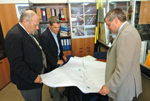 Bei dem heutigen Besuch am Dienstsitz in Kardaun anerkannten LH Durnwalder und Landesrat Mussner Kompetenz der Dienststelle und bezeichneten die Straßenbeschilderung als Visitenkarte eines Landes. "Jeder Verkehrsteilnehmer", so Bautenlandesrat Mussner, "ob Einheimischer oder Gast, profitiert von einer nicht nur den Vorschriften sonder auch den Bedürfnissen der wachsenden Mobilität entsprechenden Beschilderung und Markierung der Straßen."