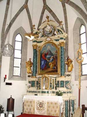 Vom barocken Hochaltar wurden Übermalung und sehr stark vergilbte Firniss entfernt, so dass er wieder in seiner kräftigen Originalfarbgebung wahrzunehmen ist. "Hinter dem Leinwandgemälde des Seitenaltares von 1615 kam das originale Altarbild zum Vorschein", so die Leiterin des Landesamtes für Bau- und Kunstdenkmäler, "dieses ist auf Bretter gemalt und zeigt dasselbe Bildmotiv wie das spätere: die drei Heiligen Urban, Barbara und Florian, darüber eine Marienkrönung. Beide Bilder wurden restauriert und das ältere als Altarbild wieder eingesetzt."