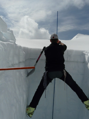 (LPA) Gute Nachrichten gibt's in diesem Frühjahr für die Gletscher. In der vergangenen Woche haben die Experten des Hydrographischen Landesamtes mit Kollegen des italienischen glaziologischen Komitees und der Uni Innsbruck die Untersuchungen zur Schneeakkumulation auf den Gletschern abgeschlossen. Allein am Weissbrunnferner in Ulten liegt diese um 60 Prozent höher als im langjährigen Schnitt.