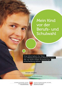 An Schülerinnen und Schüler der dritten Mittelschulklassen richtet sich die Broschüre "Zukunft im Blick". Es handelt sich dabei um ein Arbeitsheft zur Ausbildungs- und Berufswahl, das auch im Unterricht verwendet werden kann. "Durch die Arbeit mit diesem Heft lernen die Jugendlichen ihre Stärken, Fähigkeiten und Begabungen besser kennen und werden so in ihrer Entscheidungsfindung unterstützt", so die Direktorin im Amt für Ausbildung- und Berufsberatung, Rolanda Tschugguel.