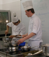 Die Grundschüler folgten dem Unterricht, den die Berufsschüler gestalteten, und zeigten Interesse für die Tricks, die Küchenmeister Hubert Hofer preisgab: Wie ein ganzes Stück Schokolade ins Törtchen gelangt, glich schon fast einem Zauberstück. Anschließend gab es Schoko-Mousse und viele andere Leckereien zu verkosten. Für die Großen galt es, Reimrätsel zu lösen.