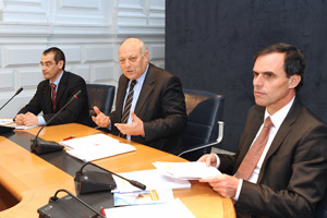 ASTAT-Abteilungsdirektor Alfred Aberer mit LH Luis Durnwalder und Landesrat Richard Theiner (v.l.)