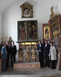 LPA - Nach über 50 Jahren sind die 1958 aus dem spätgotischen Schnitzaltar am Tartscher Bühel entwendeten Schreinfiguren an ihren ursprünglichen Platz im Strigel-Altar zurückgekehrt. Die Pfarrei Tartsch hat die im Kunsthandel wieder aufgetauchten Figuren auf Initiative des Landeskonservators Leo Andergassen erworben. Heute (7. Juni) präsentierten die Landesabteilung Denkmalpflege und die Pfarre Tartsch die Figuren und schilderten die Rückführung.
