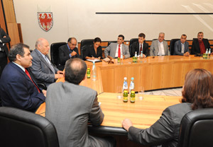Mitglieder des irakischen Parlaments informieren sich bei LH Durnwalder, rechts von ihm der Minister für die Versöhnung, links im Bild die Vertreterin des italienischen Außenministeriums.