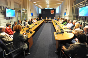 Es sei eine "illustre Runde", führte die ehemalige Bundesministerin Stiegelbauer die 32 ehemaligen Stipendiaten der Konrad-Adenauer-Stiftung ein. Aus allen Teilen Deutschlands zwischen Bayern und Schleswig-Holstein kommend, zeigten sie sich sehr interessiert an den Ausführungen von Landeshauptmann Luis Durnwalder. Der Landeshauptmann nahm sie, mehrmals unterbrochen von Applaus, mit auf einen Streifzug durch Südtirol, von der Geschichte über die Kultur bis zur Wirtschaft. Ministerin Stiegelbauer hatte ihn eingangs gebeten, der Delegation darzulegen, wie ein Autonomiestatut auf eine so gelungene Ebene geführt werden konnte, dass es als Vorbild für viele diene. Das, unterstrich sie nach seinen Ausführungen, sei "Politik für den Menschen und nicht am Menschen vorbei". Was er sich wünsche, fragte sie ihn abschließend. Sein Wunsch, dass die Menschen Erreichtes sehen und darauf mit Freude und Zufriedenheit reagieren, sei ein allgemeingültiger, schloss Stiegelbauer.
