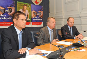 LPA - Die Landesabteilung Arbeit startet in Zusammenarbeit mit dem Südtiroler Bauernbund eine Kampagne zur Förderung der Arbeitssicherheit in der Landwirtschaft. Arbeitslandesrat Roberto Bizzo hat sie heute (2. November) gemeinsam mit Leo Tiefenthaler, Obmann des Südtiroler Bauernbundes, und Helmuth Sinn, Direktor der Landesabteilung Arbeit, im Palais Widmann in Bozen vorgestellt.