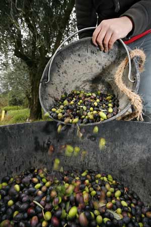 Ehe ein Ölbaum Früchte trägt, muss er mindestens sechs bis sieben Jahre alt werden. Geerntet wird im Spätherbst und Winter. Ein Ölbaum liefert zwischen fünf und fünfzig Kilogramm Oliven pro Jahr; das ergibt gerade einmal sechs Liter Öl. Die Früchte werden im traditionellen Verfahren in Ölmühlen kalt gepresst oder im kontinuierlichen Verfahren zerhackt, teils mit Wasser vermischt und das Öl durch Decanter und Zentrifugen aus der Ölmaische gewonnen, es entsteht das wertvolle native Olivenöl ("extra vergine"). Die Ölolive ist kleiner als die Speiseolive, hat weniger Fruchtfleisch und einen größeren Samen. Zudem sind Kultursorten der Öloliven frostresistenter als jene der Speiseoliven.