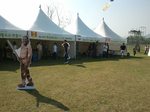 Die Stadt Jeongok liegt zwei Stunden entfernt nördlich von Seoul unmittelbar an der Grenze zu Nordkorea. Das Gelände, auf der die International Heritage Education Expo stattfindet, grenzt unmittelbar an das im vergangenen Jahr eröffnete Jeongok Prehistoric Museum – ein Gebäude, das durch seine futuristische Architektur auffällt und die Entwicklungsgeschichte der Menschheit im südasiatischen Raum auf sehr moderne Art und Weise aufzeigt.