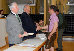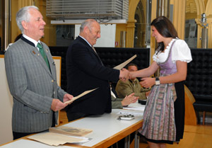 Der Landeshauptmann dankte den Mitgliedern der Jägerprüfungskommission mit dem Direktor des Landesamtes für Jagd und Fischerei Heinrich Erhard an der Spitze für ihre Arbeit. Die Anforderungen in den Prüfungen seien hoch, und dieses hohe Niveau trage auch zum Stellenwert der Jagd in Südtirol bei, unterstrich Landeshauptmann Durnwalder in seiner Ansprache. Als Verwalter des Wildbestandes nehmen die Jägerinnen und Jäger eine wichtige öffentliche Aufgabe wahr, die fundierte Kenntnisse der Revierpraxis und der Jagdorganisation, der Fauna und der Flora erfordert. "Jagd bedeutet nicht nur Schießen, "wies der Landeshauptmann hin, "sondern es wird die Auslesejagd betrieben." Durnwalder ermunterte die neu aufgenommenen Jäger und Jägerinnen zudem, die Jagdtraditionen zu pflegen. "Die Jagd", betonte Durnwalder, "ist Teil unserere Geschichte und Volkskultur, sie wird seit Jahrtausenden in unserem Land ausgeübt." Er forderte die jungen Jäger und Jägerinnen auch auf, die Kameradschaft zu pflegen: "Ihr bringt neues Wissen und viel Begeisterung mit - tauscht euch mit den erfahrenen Jägern und Jägerinnen aus."