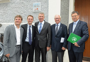 Zum Abschluss der Tagung enthüllte Landesrat Roberto eine Gedenktafel am "Haus der Genossenschaften" in der Gerbergasse 69 in Bozen. Das unter Denkmalschutz stehende Gebäude im Jugendstil war ab 1907 erste Heimat des Genossenschftsverbandes Südtirol.