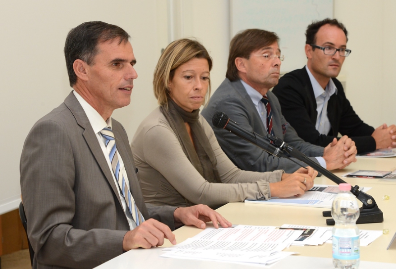 LPA - Schülerinnen und Schüler einer Klasse der Bozner Grundschule "Pestalozzi" saßen in der ersten Reihe, als heute (18. September) Landesrat Theiner und Landesnotfalldienst-Primar Brandstätter die italienweit anlaufende Kampagne zur korrekten Nutzung der Notrufnummer 118 vorstellten.