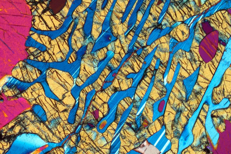 Der Geologe und mehrfach ausgezeichnete Fotograf Bernardo Cesare zeigt mit einfachen Mitteln das farbige Innenleben von ganz gewöhnlichen Steinen. Zuerst werden die Steine in dünne Scheiben geschnitten, auf einen Objektträger geklebt und auf 0,03 Millimeter herunter geschliffen. Diese nun durchsichtigen Dünnschliffe sind ein gängiges Untersuchungsobjekt der Geologen. Nun können die Bilder mit einer digitalen Spiegelreflexkamera in Verbindung mit einem Durchlicht-Polarisationsmikroskop unter gekreuzten Polarisatoren aufgenommen werden. Bei dieser Technik müssen die Bilder nicht nachbearbeitet werden, weder während noch nach der Aufnahme. Das bunte Farbenspiel entsteht allein durch die Interferenz im Kristall des polarisierten Lichts und durch die Verwendung spezieller Kompensator-Filter, die eine festgelegte Verschiebung der Wellenlängen des durchgelassenen Lichts verursachen.
