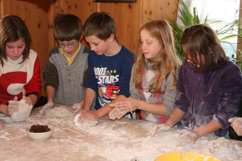 LPA - Fünfzehn Schüler und Schülerinnen der Grundschule Flaas haben auf dem Stegerhof im Weiler Kampidell in der Gemeinde Jenesien Brot gebacken und einen Schafstall besichtigt: Das Erfolgsmodell "Schule am Bauernhof" hat heute (18. Dezember) Landesrat Berger gemeinsam mit der Salerner Fachschuldirektorin Juliane Gasser Pellegrini und Landesbäuerin Hiltrud Erschbaumer vorgestellt.