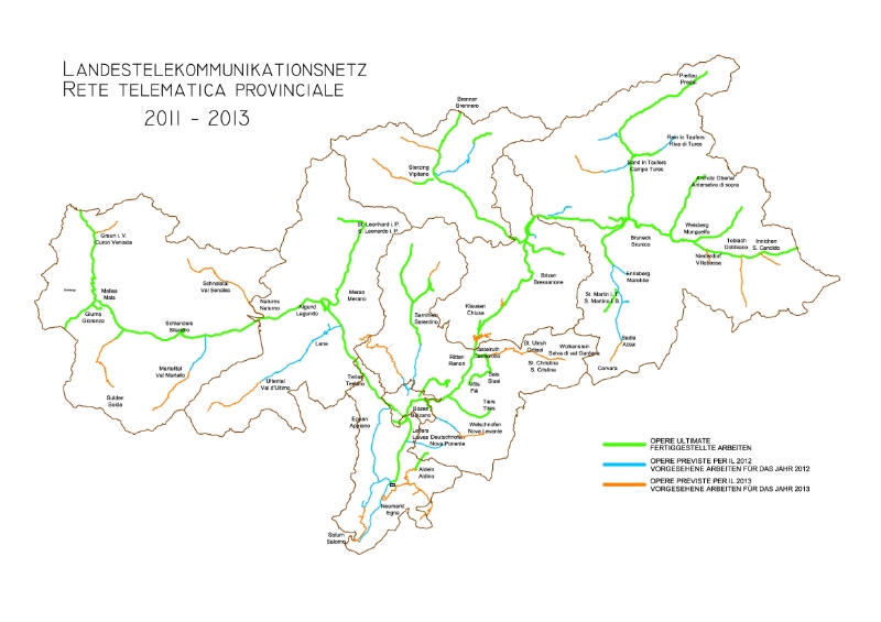 Um die Datenautobahnen auf Vordermann zu bringen oder überhaupt erst zu schaffen, hat sich die Landesregierung seit 2009 kräftig ins Zeug gelegt: "Wir wissen, welche Bedeutung einem zeitgemäßen Datennetz zukommt und wie wichtig ein solches für die Erhaltung der Peripherie als Lebens- und Wirtschaftsraum, und damit im Kampf gegen die Abwanderung ist", so Mussner. Entsprechend prioritär werde der Ausbau des Breitbandnetzes gehandhabt, auch in diesem Jahr: "Das primäre Netz, also jenes auf den Hauptachsen von Norden nach Süden bzw. von Osten nach Westen steht, das sekundäre in die Nebentäler auch zu großen Teilen, wir arbeiten sogar zum Teil bereits am tertiären Netz, das die einzelnen, auch abgelegenen Fraktionen mit den Hauptorten verbindet", so der Landesrat.