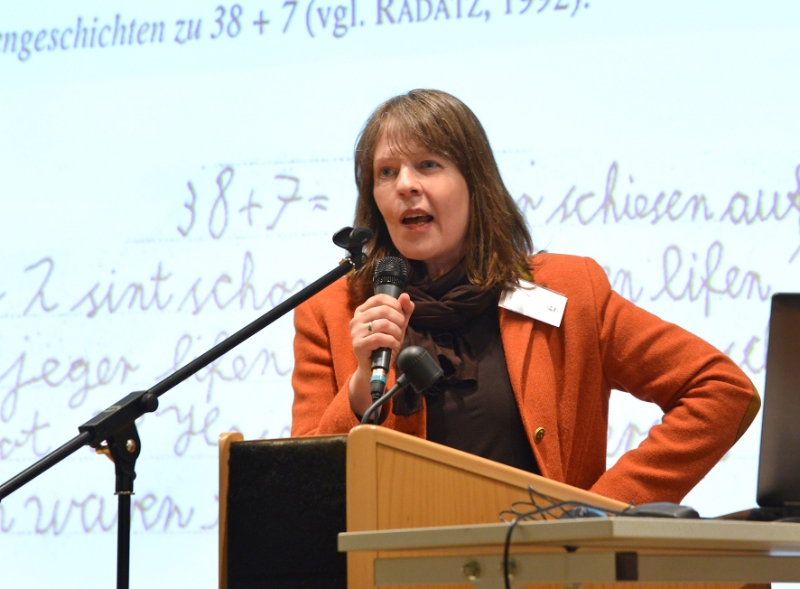 Passend dazu stellte die erste Referentin Petra Küspert aus Würzburg in ihrem Vortrag „Die Entwicklung mathematischer Kompetenzen" neue Modelle des Erwerbs mathematischer Kompetenzen vor. Sie skizzierte den Entwicklungsverlauf von der Grundschule bis zur Sekundarstufe und zeigte auf, wie Kinder mit Rechenstörung im Unterricht gezielte Förderung erhalten können. In ihrem zweiten Referat „Prävention von Rechenschwäche" unterstrich Küspert, wie wichtig es sei, eine Rechenstörung früh zu erkennen und bereits in der frühen Grundschulzeit rasch und effizient darauf zu reagieren. Dies erspare es, dass Kinder jahrelang vergeblich übten und versuchten, die Schwierigkeiten auszugleichen.