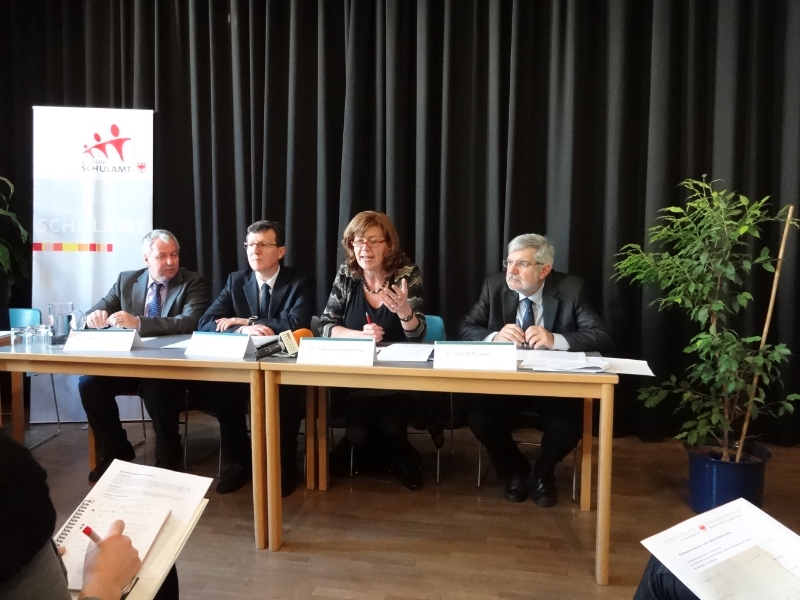 "Selbstverständlich", leitete Landesrätin Sabina Kasslatter Mur die einstündige Pressekonferenz ein, "müssen wir Mehrsprachigkeit fördern. Uns ist gemeinsam daran gelegen, einen attraktiven und gewinnbringenden Sprachunterricht zu gestalten. Darüber hinaus appelliere ich auch an die Familien, ihren Kindern die Begeisterung für die Sprachen zu vermitteln und zu erhalten." Sprache, unterstrich sie, sei das Tor zur Welt: Je früher dieses Tor aufgestoßen wird, je schneller Kinder und Jugendliche begreifen, welches Potenzial in Sprache steckt, desto eher können sie ihre Bildungschancen nützen und ihre beruflichen wie privaten Vorstellungen verwirklichen. "Ich habe die Vision", führte Kasslatter Mur aus, "dass Jugendliche nach Abschluss der Oberschule über ausgezeichnete Kenntnisse ihrer Muttersprache und gute Kenntnisse in Italienisch und Englisch verfügen."