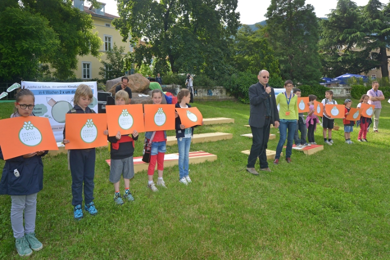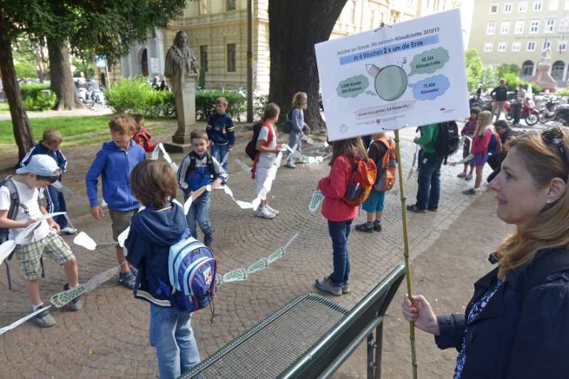 Vier Wochen lang haben Schülerinnen und Schüler jeden Tag in ihre Sammelpässe KlimaSchritte in Form von grünen Aufklebern sammeln können, indem sie ihren Schulweg zu Fuß, mit dem Fahrrad, dem Roller oder dem Bus absolviert haben. Stolze 48.324 KlimaSchritte wurden gesammelt und dabei 73.480 Kilometer autofrei und umweltbewusst bewältigt, während ein gewöhnlicher Mittelklassewagen für diese Distanz 8,8 Tonnen Kohlendioxid emittieren würde. "Die Aktion ist ein aktiver Beitrag zum Klimaschutz und die Kinder bewegen sich mehr. Weniger Autoverkehr im Umkreis von Schulen bedeutet auch weniger Lärm, bessere Luft und mehr Sicherheit für Fußgänger und Radfahrer", erklärt Ruffini. Schon zum zweiten Mal dabei sind etwa die Grundschullehrerinnen aus Siebeneich Margit Steiner und Erika Pircher mit ihren Klassen. Die Kinder, so berichten sie, seien begeistert dabei gewesen und hätten Ihre Eltern dazu gedrängt, das Auto stehen zu lassen, um im klasseninternen Wettstreit vorne mit dabei zu sein. Auf dem Parkplatz vor der Schule stehen deutlich weniger Autos, und die Kinder steigen sogar eine Busstation früher aus, um zu Fuß zu gehen.