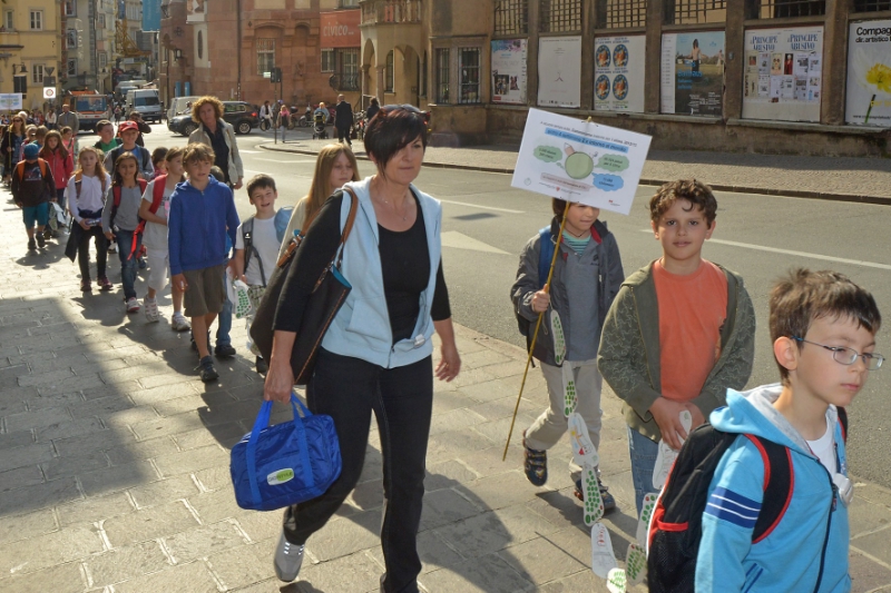 Stellvertretend für alle beteiligten Schulklassen kamen heute 110 Kinder aus Lana, Klausen, Jenesien, Laag/Neumarkt und Siebeneich zur Abschlussveranstaltung nach Bozen, wo sie in einer 200 Meter langen Karawane, die aneinander gereihten Sammelpässe haltend, vom Bahnhofspark durch das Stadtzentrum bis zur Talferwiese marschierten, um dort an der Abschlussfeier teilzunehmen. Dort wartete auf die Kinder ein Klima-Parcours mit Spielen sowie Bewegungs- und Geschicklichkeitsübungen zum Mitmachen. "In diesem Schuljahr haben wir mit unseren Projekten insgesamt 782 Klassen mit 12.183 Schülern und Schülerinnen erreicht", berichtet Heidi Thaler, Umweltbildungsverantwortliche der Landesagentur für Umwelt.