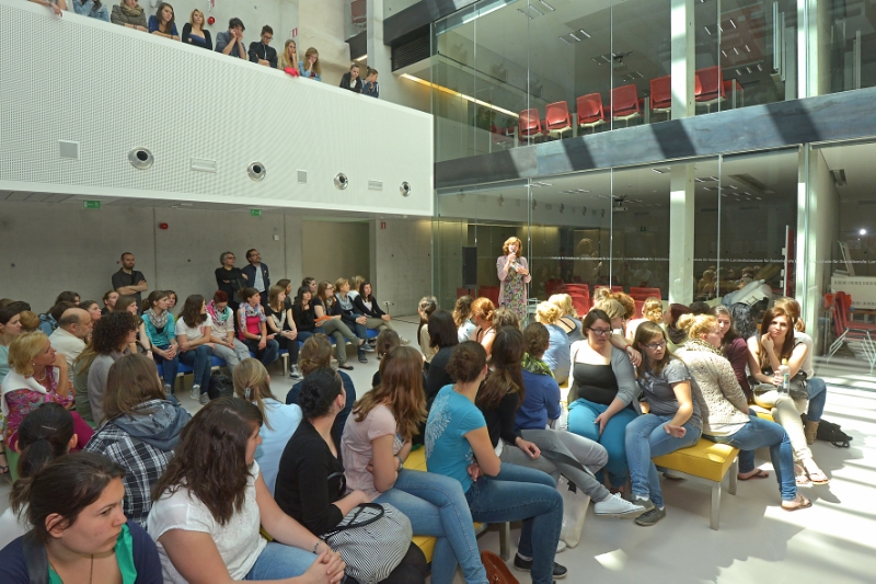 „Das Kunstprojekt war in vieler Weise bereichernd: Für die Menschen mit Behinderung, weil sie klaren Auftrag bekommen haben, und weil ihre Arbeit wertvoll ist und geschätzt wird sowie für die Schule, die nun Kunstwerkwerke zur Verfügung hat", unterstrich Landesrätin Kasslatter Mur. Der Direktor der Sozialdienste der Bezirksgemeinschaft Salten Schlern Günther Staffler verglich die Bilder mit Blumen im Knopfloch eines Anzugs. Angetan von den Kunstwerken zeigten sich auch die Schüler der Fachschule, die auf die besondere Kreativität und Euphorie verwiesen, mit denen die Künstler ihre Werke gestaltet haben. Die Leiterin der Geschützten Werkstatt Kimm Ruth Jamnik stellte die verschiedenen Künstler und ihre Werke kurz vor.