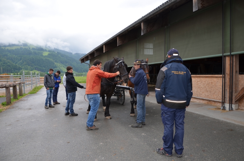 Eine Schülergruppe der Laimburg hat jetzt mit den Praxislehrern Günther Cazzanelli und Martin Pomarolli interessante und lehrreiche Tage in St. Johann verbracht. Höhepunkt des Aufenthalts war der Besuch des modernst ausgestatteten Lehrbetriebs samt Alm; bewirtschaftet werden rund 27 Hektar Grünland und die Landesalm im Spertental in Kichberg. Rund 24 Milchkühe der Rasse Pinzgauer, die mit Rotfriesian eingekreuzt werden, produzieren an die 150.000 Liter Biomilch. Zudem erhielten die Schüler einen Einblick in die Norikerzucht.