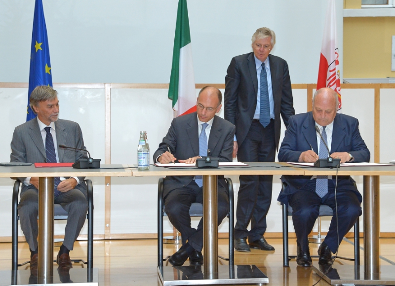 Premier Letta und Landeshauptmann Durnwalder unterzeichnen Abkommen
