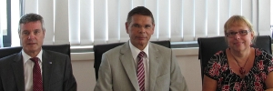 Pressekonferenz in Lignano Sabbiadoro: Abteilungsdirektor Arbeit Helmuth Sinn (Bildmitte) mit dem Landesgeschäftsführer des AMS Tirol, Anton Kern, sowie mit der Eures-Beraterin Susanne Frick.