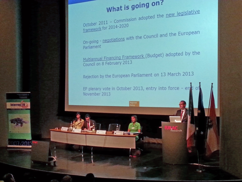 Die ganztägige Veranstaltung in der vergangenen Woche an der EURAC bot am Vormittag aktuelle Informationen zum Stand der Programmplanung. Dabei berichtete unter anderem der zuständige Vertreter der Europäischen Kommission, Marcin Wójcik, über Möglichkeiten und Bedingungen in den neuen EU-Verordnungen. Am Nachmittag schloss die Veranstaltung mit drei Workshops zu den Themen Innovation/Wirtschaft, Umwelt und Bildung, in denen sich die Fach-Stakeholder in einer moderierten Diskussionsrunde mit Verwaltungsbehörde und Regionalen Koordinierungsstellen über Erfahrungen aus der aktuellen und Erwartungen an die kommende Förderperiode austauschen konnten. Gemeinsam wurden auch Ideen zu neuen Projekten mit grenzüberschreitendem Mehrwert diskutiert.