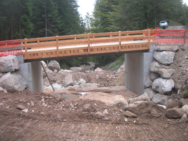 Derzeit sind die Männer der Wildbachverbauung auf der Höhe von Bad Gfrill an der Gampenstraße im Einsatz. In einem ersten Baulos oberhalb der so genannten Joselebrücke werden sechs Konsolidierungssperren aus Stahlbeton errichtet. Diese sind im Schnitt drei Meter hoch, 25 Meter breit, liegen etwa 20 Meter voneinander entfernt und sollen das Bachbett besser befestigen. Betroffen ist ein insgesamt 150 Meter langer Bachabschnitt. Nachdem vor allem die Joselebrücke bei Unwettern ein Problem hätte darstellen können, wurde diese im Zuge der Arbeiten nicht nur neu errichtet, sondern auch erhöht. „Damit ist die Durchflusskapazität aufs Doppelte angewachsen und die Zufahrt zu den Höfen Josele und Klasen gesichert", erklärt Abteilungsdirektor Pollinger.