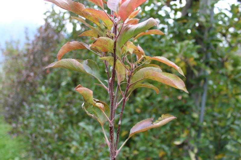 Gerade jetzt in der Nacherntezeit ist es besonders wichtig, einen weiteren Kontrollgang in den Apfelanlagen durchzuführen, um kranke Bäume ausfindig zu machen. Erfahrungen zeigen, dass nach der Ernte meist noch weitere Bäume Apfeltriebsucht-Symptome aufweisen. Eindeutige Krankheitssymptome sind deutlich vergrößerte Nebenblätter sowie die sogenannten "Hexenbesen". Auch eine vollständige Rotlaubigkeit der Apfelbäume ist ein Indiz, das mit hoher Wahrscheinlichkeit einen Apfeltriebsuchtbefall anzeigt.