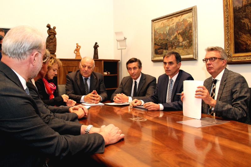 Am vergangenen Freitag hat das Unternehmen Hoppe die Schließung seines Werkes in St. Martin in Passeier angekündigt. 158 Arbeiter werden dadurch ihren Arbeitsplatz verlieren. Auf Einladung der Landesregierung haben sich heute Christoph Hoppe und Norbert Mayr von der Hoppe-Unternehmensleitung mit Landeshauptmann Luis Durnwalder, der St. Martiner Bürgermeisterin Rosmarie Pamer, den Landesräten Roberto Bizzo, Thomas Widmann und Richard Theiner getroffen, um über Lösungen für die Zukunft der Hoppe-Mitarbeiter zu diskutieren.