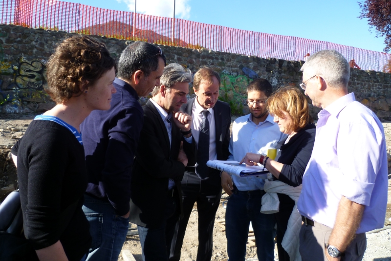 LPA - Am Hochwasserstützpunkt in Sigmundskron und an der Baustelle am Eisack im Süden Bozens hat sich Landesrat Schuler gestern (9. April) bei einem Lokalaugenschein mit Gemeindevertretern und Technikern ein Bild von der Lage der Bauarbeiten verschafft, die derzeit durchgeführt werden.