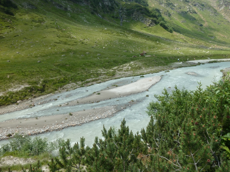 Durch die feinen Sedimente aus der Gletscherschmelze führen Gletscherbäche im Sommer trübes Wasser, die so genannte Gletschermilch. Einige wenige Lebewesen wie zum Beispiel die Larven der Eintagsfliegengattung "Rhithrogena" kommen mit den harten Bedingungen eines Gletscherbaches gut zurecht und finden in den nährstoffarmen und sauerstoffreichen Gewässern einen idealen Lebensraum.