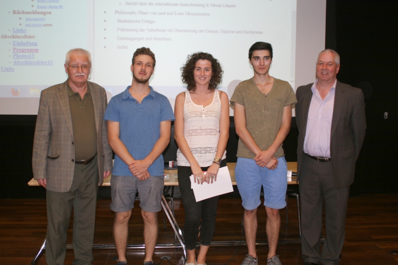 Ferdinand Patscheider, Schulinspektor für den sprachlich-expressiven Bereich, hat die Siegerehrung eröffnet und verwies auf die Bedeutung des Philosophie-Unterrichts. Wer auf philosophische Gedanken zurückgreifen könne, habe einen erheblichen Vorteil.