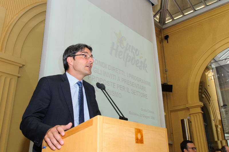 Einblick in die Fördermöglichkeiten, welche europäische Strukturfonds wie EFRE, Interreg, ESF oder ELER der Tourismusbranche eröffnen, gab im Anschluss Peter Gamper von der Landesabteilung Europa. Er verwies darauf, dass die auf lokaler Ebene verwalteten europäischen Strukturfonds von Südtirol sehr gut genutzt würden und sprach von einer Auslastung von hundert Prozent. Dies bestätigte auch Claudio Francesco Sordini, Direktor im Landesamt für ländliches Bauwesen.