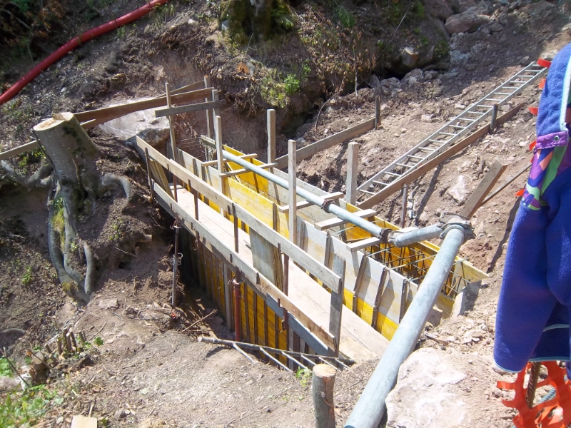 Die Umsetzung des Projektes ist eine Herausforderung für Vorarbeiter Friedrich Gross und seinen Bautrupp: Die Baustelle ist nur schwer erreichbar und zudem eng und steil, der Beton muss zur Baustelle hinaufgepumpt werden. Trotz dieser Schwierigkeiten sollten die Arbeiten bis Ende September abgeschlossen sein.