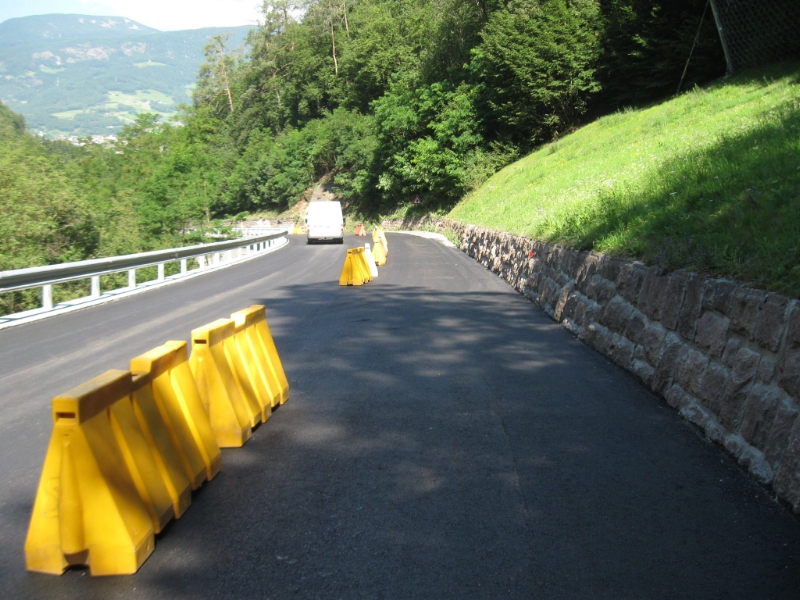 Durch den straßenbaulichen Eingriff auf dem rund einen halben Kilometer langen Abschnitt der Grödner Straße bei Villnod in Lajen Ried zwischen Waidbruck und Prembach ging es um die Entschärfung einer Engstelle. Auf einer Länge von 170 Metern wurde zudem talseitig eine sechs Meter hohe Befestigungsmauer aus Stahlbeton errichtet. Bei den Grabungsarbeiten dazu war es zu einer Rutschung gekommen. Aus Sicherheitsgründen wurde die Straße daher in diesem Bereich drei Wochen lang bis 25. Juni völlig gesperrt. Die Verkehrsteilnehmenden mussten über die Staatsstraße von Klausen nach Pontives (SS 242dir) oder die Landesstraßen von Blumau nach Kastelruth (LS 24) und den Panidersattel (LS 64) ausweichen. Die Sperrung ermöglichte der beauftragten Baufirma "Oberosler" allerdings ein zügiges Arbeiten. Heute nun wurden die 650.000 Euro teuren Ausbauarbeiten abgeschlossen.