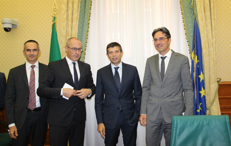 LH Kompatscher, Minister Lupi, LH Rossi und A22-Geschäftsführer Pardatscher (von rechts). Foto: LPA/Tasser.