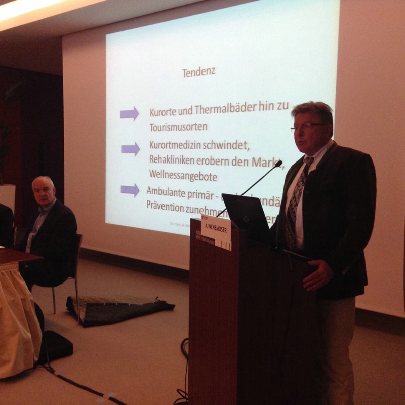 Kurt Kaufmann, Geschäftsführer des Österreichischen Heilbäder- und Kurorteverbandes, präsentierte das Thermalwesen in Österreich und Tirol, ging aber auch auf die Situation der östlichen Nachbarn (Slowenien, Ungarn, Slowakei) und des deutschen Marktes ein. Wichtig sei, so Kaufmann, eine Wiederbesinnung auf die natürlichen Heilvorkommen als regionale individuelle Marke zur Vorbeugung von Krankheiten. Auch werde in Zukunft vermehrt die Qualität und individuelle Betreuung ausschlaggebend für Erfolg oder Misserfolg einer Therme sein.