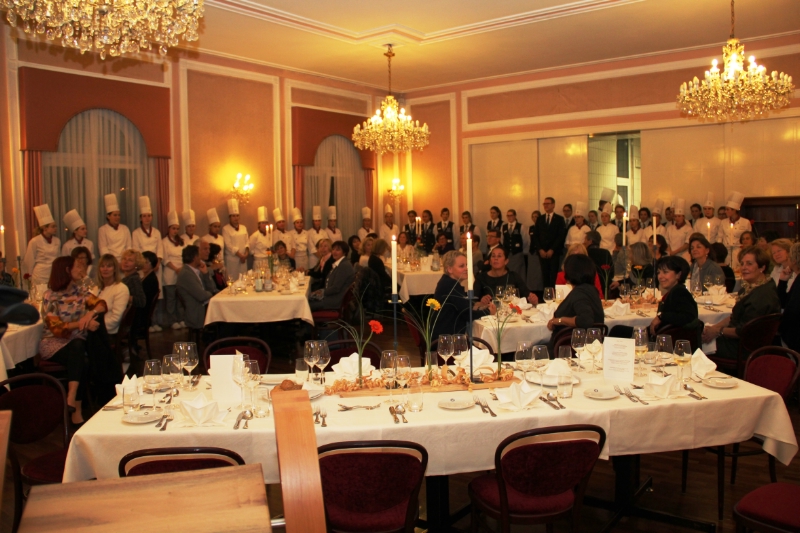 Als Dankeschön bekamen die geehrten Lehrerinnen und Lehrer aus den Händen von Bildungslandesrat Achammer und Schulamtsleiter Höllrigl ein Anerkennungsdiplom und ein kleines Geschenk überreicht. Bei einem gemeinsamen Abendessen, das die Schüler der Landeshotelfachschule "Kaiserhof" zusammen mit ihren Lehrpersonen zubereitet hatten, und mit den musikalischen Genüssen der Gruppe "La Valse" klang der Abend aus.