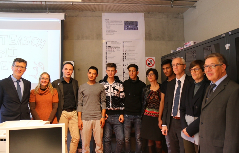 Das Projekt "Deutsch als Zweitsprache für Jugendliche mit Migrationshintergrund (DaZ)" wird begleitet vom Bereich der Deutschen Berufsbildung und dem Bereich Innovation und Beratung. Heute (26. November) wurde es im Beisein von Landesrat Philipp Achammer vorgestellt. "Die Sprache ist tatsächlich der Schlüssel zur Integration, die Kenntnis der Sprache ist die Voraussetzung sich zuhause zu fühlen", erklärte Landesrat Achammer und bedankte sich für das große Engagement der Lehrpersonen und des Direktors der Landesberufsschule für Handwerk und Industrie Josef Andreas Haspinger. Das neue Konzept der Sprachförderung sieht neben der Förderung der standardsprachlichen Kompetenzen einen verstärkten Unterricht in der "Fachsprache Deutsch" in Zusammenarbeit zwischen den Sprachlehrkräften und den Fachlehrpersonen sowie die Förderung von rezeptiven Kenntnissen, d.h. vom Verstehen der gesprochenen Sprache vor.