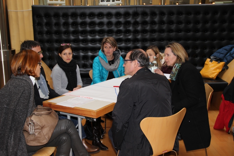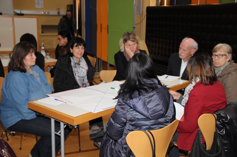 In der Folge setzen sich die Teilnehmenden an mehreren Arbeitstischen mit der Frage auseinander, wie Präventionsarbeit in den drei Bereichen Schwangerschaft und der ersten Mutterschaft, Pubertät und Trennung zu gestalten sei, damit man 2018 sagen könne, man sei einen Schritt weiter. Die Ergebnisse dieses "World-Cafès", dieser Arbeit in Gruppen, wurden abschließend vorgestellt und sollen nun in das Präventionskonzept einfließen.
