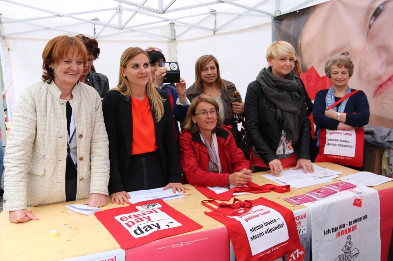 Anlässlich des Equal Pay Day haben heute (17. April) der Landesbeirat für Chancengleichheit, das Frauenbüro und 59 teilnehmende Frauenorganisationen südtirolweit auf den Lohnunterschied zwischen Frauen und Männern von durchschnittlich 17 Prozent sowie auf die ungleiche Verteilung der Hausarbeit aufmerksam gemacht. Am Infostand in Bozen fand dazu erstmals ein Bügelwettbewerb für Männer statt.