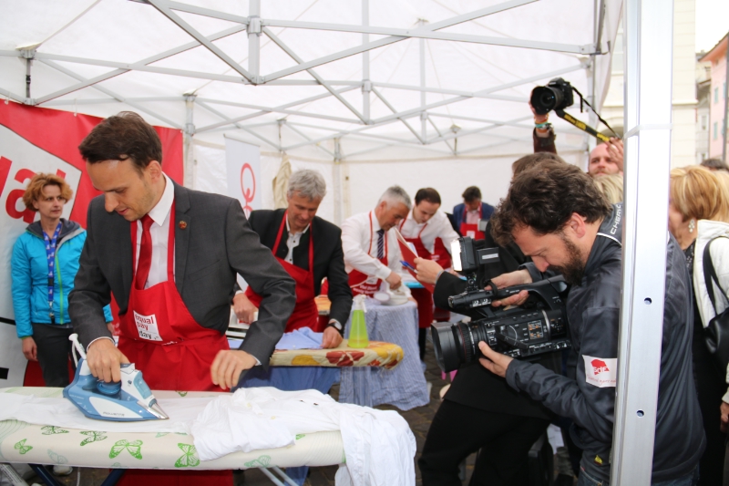 Neben den zahlreichen Informationsständen maßen sich am Musterplatz in Bozen Männer aus der Politik, der Wirtschaft und dem Sport beim ersten Ironman-Contest im Bügeln. "Mit dieser Aktion wollen wir auf den Wert der unbezahlten Hausarbeit, die auch in Südtirol in erster Linie nach der traditionellen Rollenverteilung von Frauen bewältigt wird, aufmerksam machen - mit einer Prise Humor", unterstrich die Präsidentin des Landesbeirates für Chancengleichheit Ulrike Oberhammer. Landesrätin Martha Stocker betonte anlässlich des Equal Pay Day, dass diese traditionelle Rollenverteilung auch Auswirkungen auf das Einkommen und die Rente habe, zumal sich deshalb viele Frauen für Teilzeitarbeit entscheiden. "Es scheint noch immer so, als wäre die Familienarbeit ein angeborenes Recht der Frauen, dabei geben wir 50 Prozent der Haus-, Erziehungs- und Pflegearbeit gerne ab", forderte die Landesrätin die Männer zu einer Entlastung der Frauen auf.
